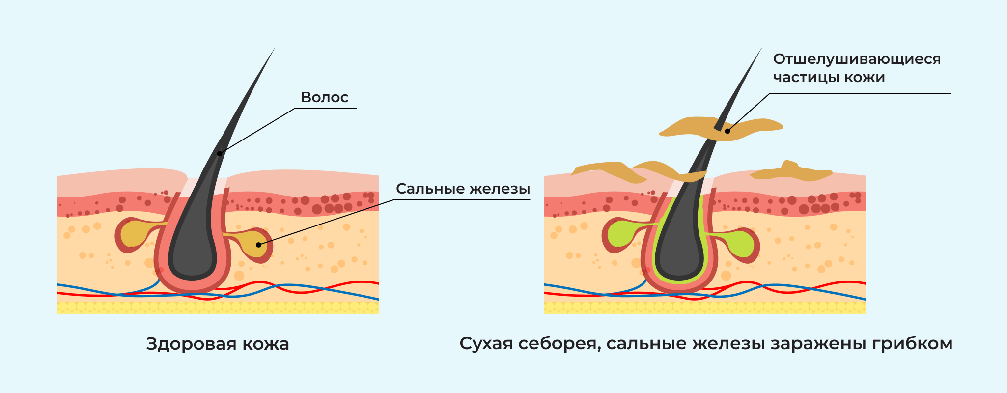 Развивается в результате патологического поредения волос, спровоцированного себорейным дерматитом (это заболевание, проявляющееся избыточным образованием кожного сала). Симптомами болезни являются зуд кожи головы и перхоть. В случае затяжного течения на коже могут появляться ранки или язвы.