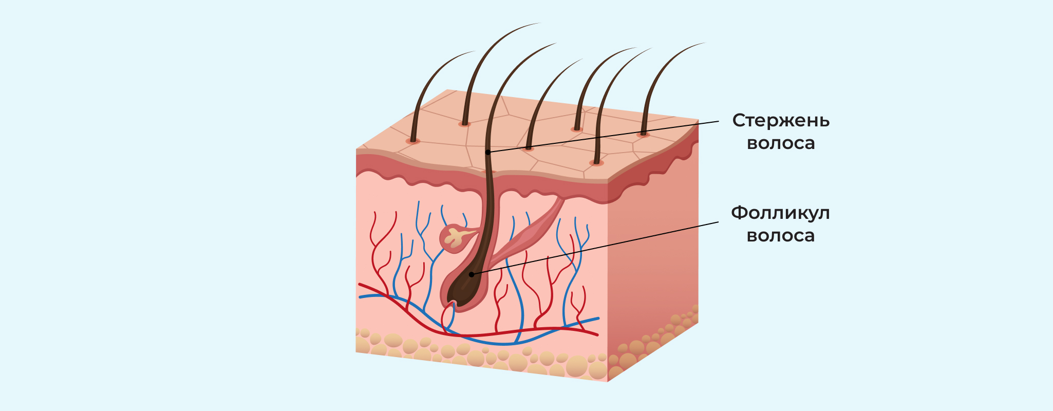 Волос состоит из видимой части - стержня - и корня, который располагается в волосяном фолликуле. На коже головы насчитывается от 100 тыс до 150 тыс фолликулов. Утрата волос является естественным состоянием. Жизнь каждого волоска длится от 3-х до 6-ти лет, после этого он выпадает и на его месте вырастает новый. Этот процесс происходит незаметно.