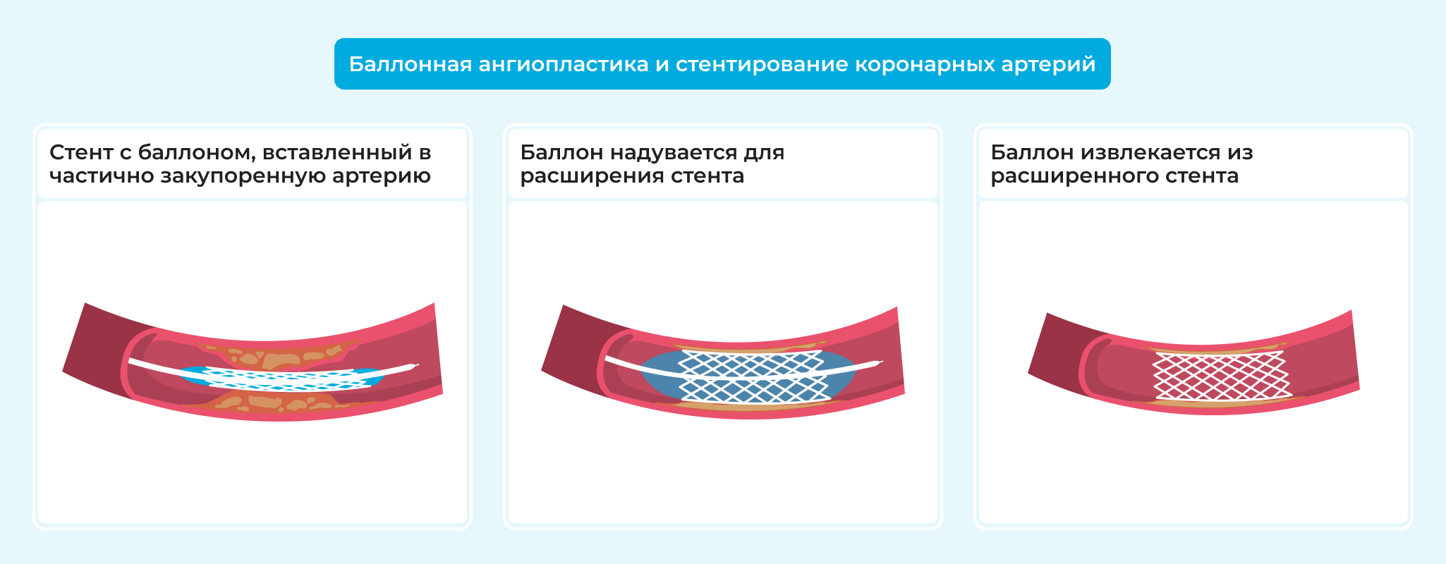 Рис. 4 Баллонная ангиопластика и стентирование коронарных артерий.